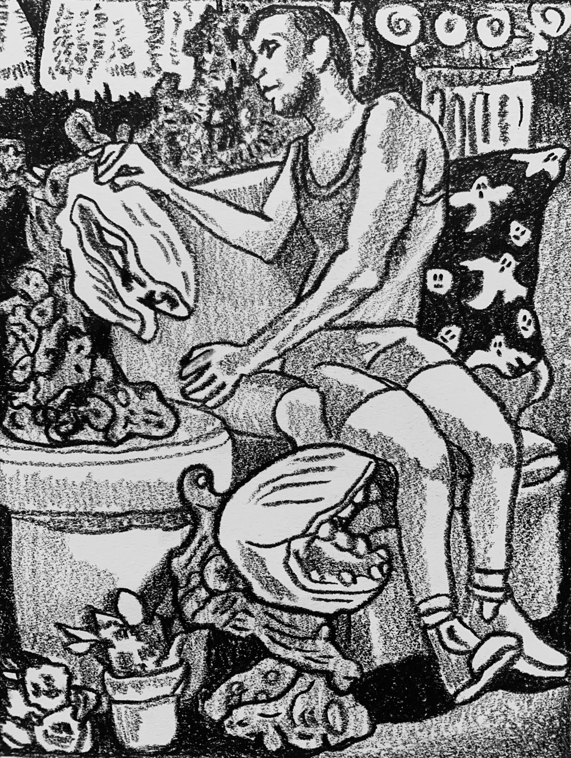 Creepy Conservatory Creepy Conservatory $300.00 Black Wax Crayon on Bristol 11 x 14 inches 1 in stock Creepy Conservatory quantity Add to cart Category: Drawings Related products Tickle My Feather $510.00 Add to cart Bewitched $510.00 Add to cart Moth to Flame $860.00 Add to cart Otherside of Fear $860.00 Add to cart