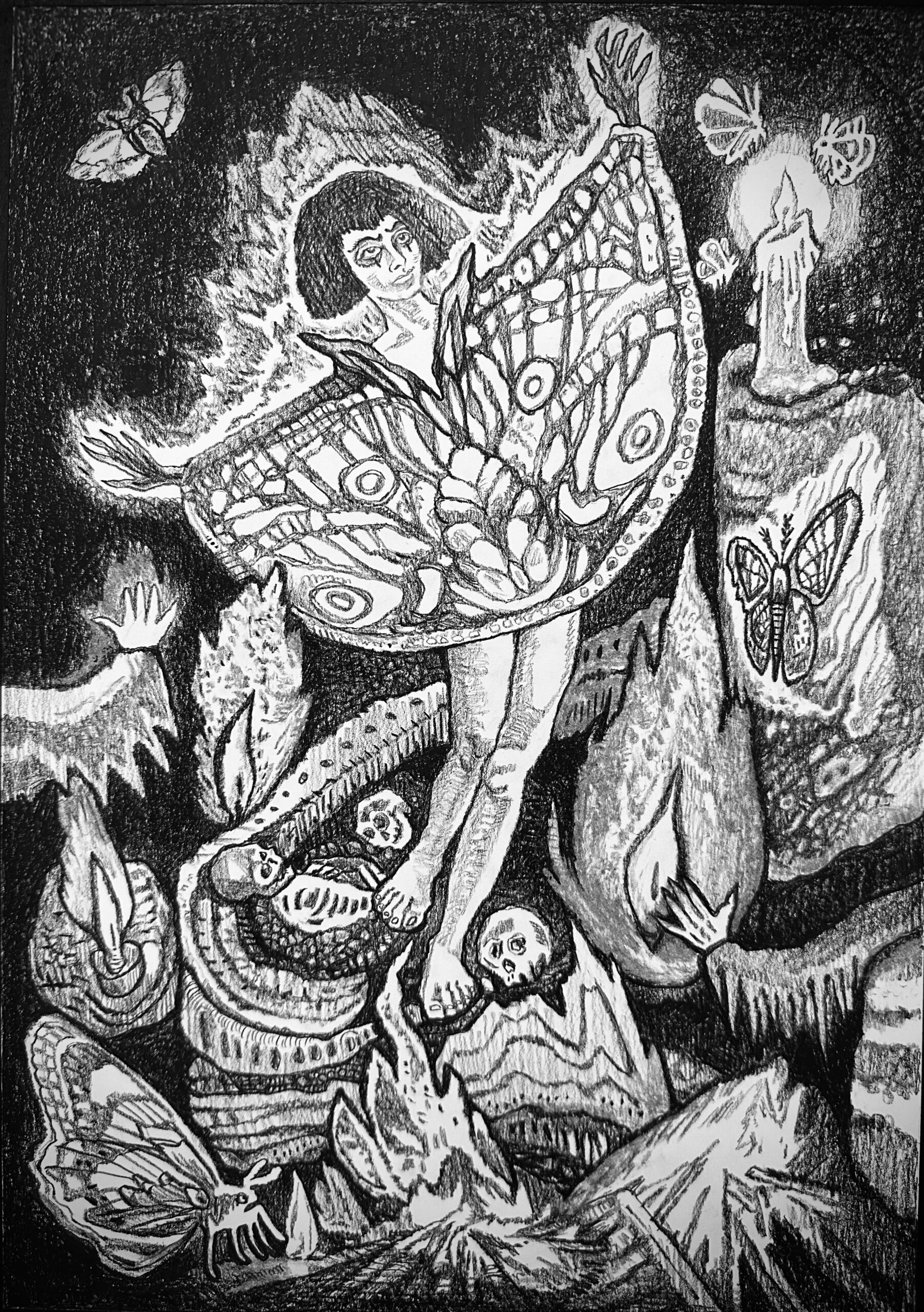 Moth to Flame Moth to Flame $860.00 Black Wax Crayon on Bristol 18 x 24 inches Moth to Flame quantity Add to cart Category: Drawings Related products Ectoplasm $510.00 Add to cart Bewitched $510.00 Add to cart Winter Mix $510.00 Add to cart Weeping Witch $860.00 Add to cart