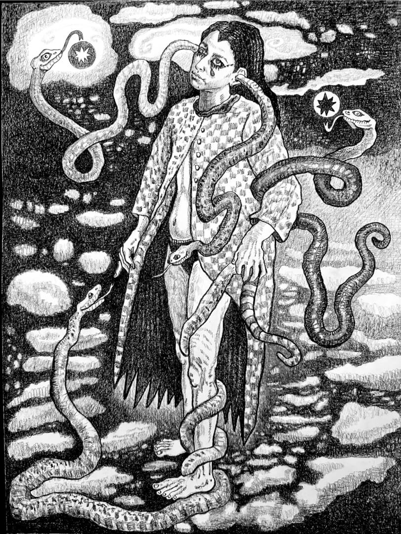 Snake Charmer Snake Charmer $860.00 Black Wax Crayon on Bristol 18 x 24 inches Snake Charmer quantity Add to cart Category: Drawings Related products Divine Feminine $860.00 Add to cart Bewitched $510.00 Add to cart Bat-Kat $510.00 Add to cart Threshold Guardian $300.00 Add to cart